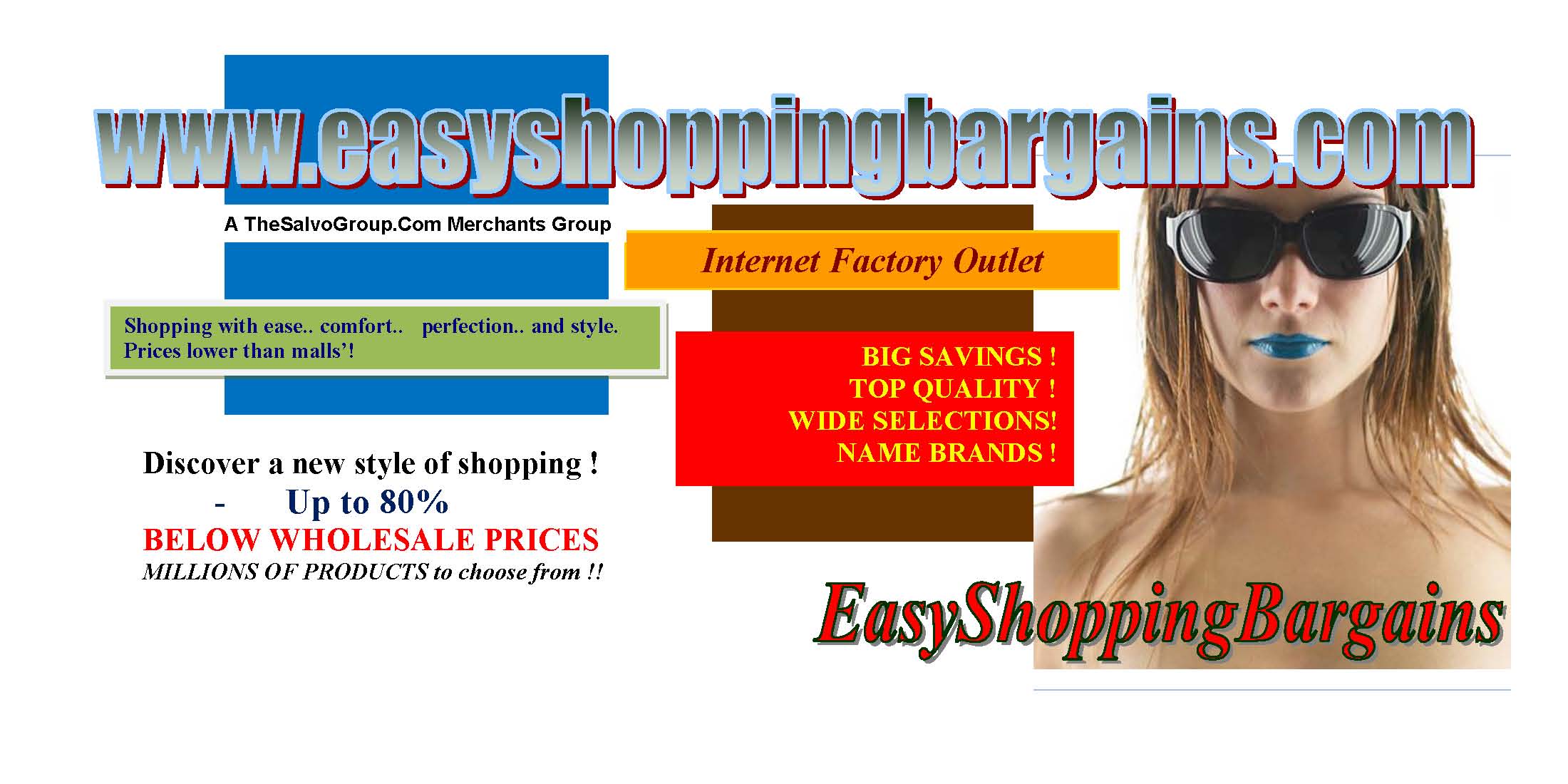 We are an online supermall. Visit each online storefront. You are guaranteed to get the latest pricing, bargains and inventory, and daily updated online coupon deals and discount savings from name brand stores! Hundreds of thousands of products to choose from, - from hundreds of factory outlets. Shop online. It's the easiest. It's the fastest. It's the safest !!